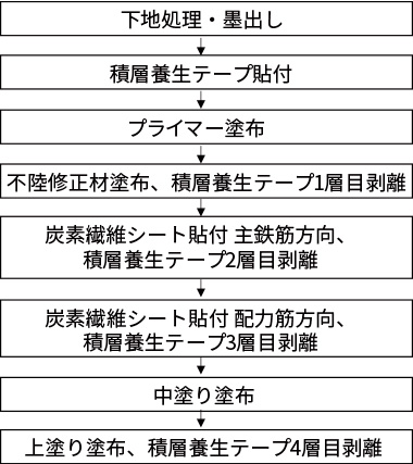 積層養生テープを用いた連続繊維シート格子接着工法の施工事例報告