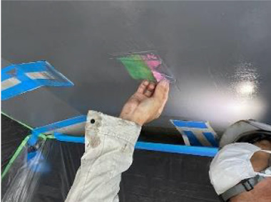 (4)中塗り、上塗り塗布、積層養生テープ4層目(最下層)の撤去
