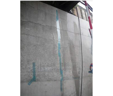 写真-1、2にシールテープおよび注入状況を示す。施工時には剥離紙を剥がしてひび割れ表面にシールテープを貼付する。貼付後、30分〜1時間程度で注入圧に耐え得る粘着力に達する。これにより、従来はシール材の塗布から注入までの養生が1日必要であったのに対し、シールテープを貼付した日のうちに注入が可能となり、工期が1日短縮できるという特長がある。