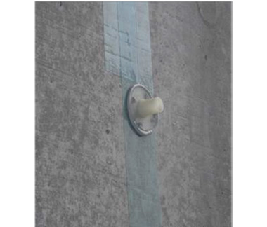 シールテープ貼付後、注入座金の設置位置にマジック等で印を付け、カッターナイフ等でシールテープに切込みを入れる。切込みを入れた箇所が注入座金の中心となるように速硬型の接着剤で注入座金を固定し、硬化するまで1時間程度養生を行う。