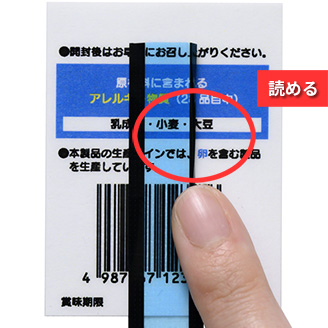 - 黒いラインの部分には粘着剤が付いていないため、テープをめくって表示内容を確認できます。