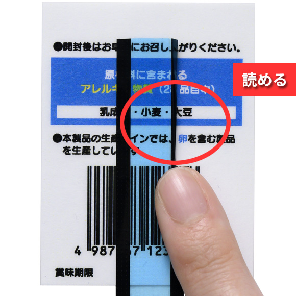 - 黒いラインの部分には粘着剤が付いていないため、テープをめくって表示内容を確認できます。