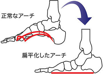 足裏の疲れの原因の一つは、足裏のアーチ(土踏まず)が崩れることです。足裏に継続的に負担がかかることでアーチが低下し、疲れを感じることがあります。