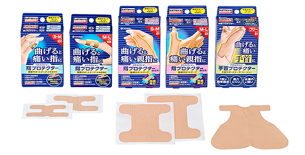 「簡単本格テーピング」をコンセプトに、テーピングになじみがない、巻き方がわからない人でも痛い部位にサッと貼れて、簡単に固定ができるサポートテープです。「指プロテクター」「指プロテクター親指用」「手首プロテクター」をラインアップしています。