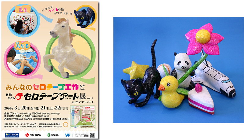 ニチバン株式会社(本社:東京都千代田区、代表取締役社長:高津 敏明)のセロテープ®でアート作品を制作する、世界で唯一の「セロテープアート®作家」瀬畑亮(せはた りょう)氏による「みんなのセロテープ®工作と体験できるセロテープアート®展」が3月20日(金/祝)から3日間、南町田グランベリーパーク内グランベリーホール by iTSCOMで開催されます。小さなお子様からお年寄りまで、みんなで一緒に楽しめる、春休みにピッタリの”体験できる”アートイベントです。
